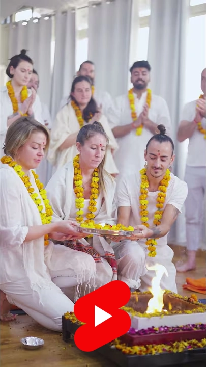 "Fire ritual", in Sanskrit is referred to as "Hawan" This is conducted in the beginning of the Teacher Training Programme as an opening ceremony. Here, we perform a ceremony asking for blessings of the Universe and pray for the cosmos to guide us, lead us to the light of its knowledge. In this ritual, we offer various medicated and spiritual herbs and ghee into the divine fire to purify the surrounding environment and to enhance the energy/Aura of the place.